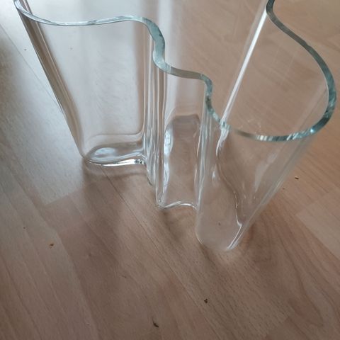 Valkoinen Aalto-maljakko(120 mm) vanhaa tuotantoa arviolta 60-luvulta (tai 70-luvun alusta). Iittalan kolmiotarra (1958-1974) ja signeeraus löytyy. Maljakko on täysin ehjä ja hyväkuntoinen, pohjassa hyvin pientä siirtelyjälkeä/naarmua.