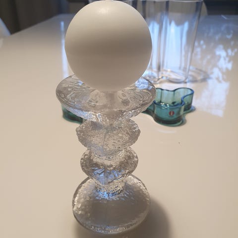 Iittala kynttilänjalka kirkkaasta lasista. Koriste-esine, joka soveltuu kynttilän pitämiseen. Läpinäkyvä lasimateriaali tarjoaa hillityn ja ajattoman ilmeen.