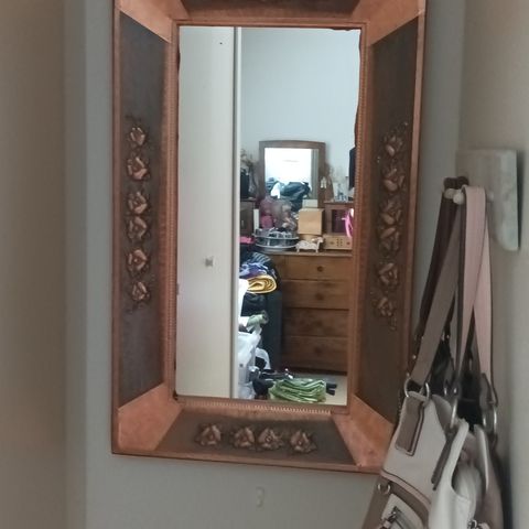 Myydään hyväkuntoinen kelta-vihreä kukkaretropeili.
