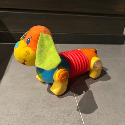 Liikkuva koirahahmo. Yhdellä painauksella liikkuu noin metrin hiljaisella nopudella.