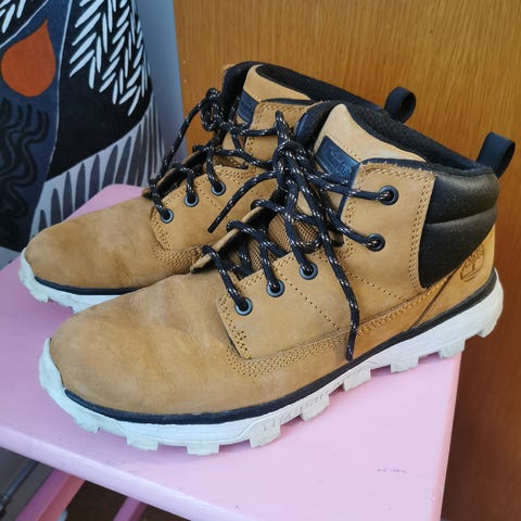 Timberland nuorten kengät, koko 39. Väri musta, keskikorkea varsi. Käytetty muutaman kerran siistimmissä tilaisuuksissa viime talvena, joten todella hyvässä kunnossa, raikkaat sisältäkin.