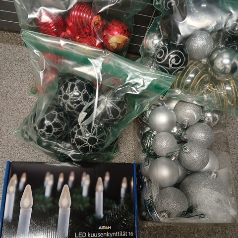 Myydään yhden joulun käytössä olleet langattomat joulukuusenkynttilät 10 kpl sekä kaukosäädin. Kynttilät toimivat AAA-paristoilla, niitä ei mukaan. Yhden kynttilän kiinnikkeestä jousi puuttuu, saa värkättyä esim. rautalangalla kiinni kuuseen.