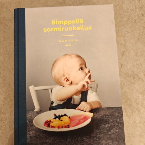 Ihania sormiruokailureseptejä ikävaiheittain. Kirja muutoin moitteettomassa kunnossa, mutta kansien alakulmissa hieman kulumaa (näkyy ensimmäisessä kuvassa).