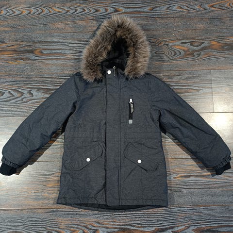 Hupullinen 8 vuotiaalle sopiva talvitakki. Huppu neppareilla, voi irrottaa.