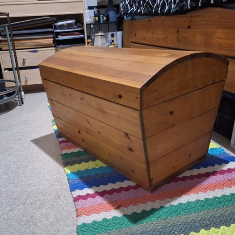Vanha arkku hyvässä kunnossa. Hyvä tavaroiden säilytykseen.