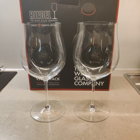 Käyttämättömät lasit alkuperäisessä pakkauksessa. Korkeus 20 cm, suuaukko 8,5 cm ja vetoisuus 57 cl. Ostettu Ranskasta. Vain nouto.