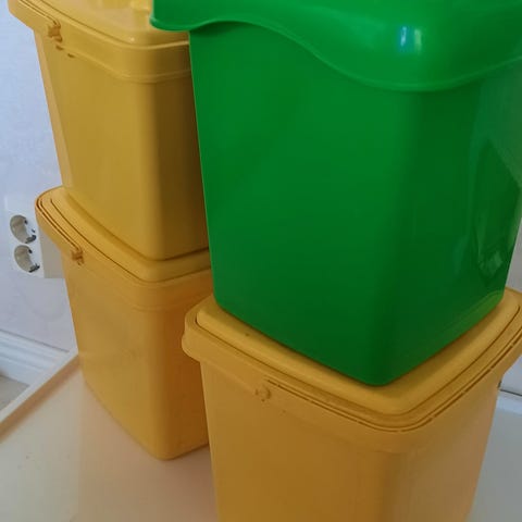 Kolme kannellista iloisen keltaista ja yksi vihreä Legon kannellinen säilytyspurkki legoille tai muille lapsen leluille tai pikkutarvikkeille. Kaikkien kunto erinomainen ja kaksi vaaleansinistä laatikkoa käyttämättömiä. Myynnissä Lohjalla, mutta kulkeutuvat ilman postimaksua Helsinkiin, Espoon Ikealle ja Espoon keskukseen. Myös postitus onnistuu. Myynnissä myös muualla. Hp. 10 euroa/kpl.