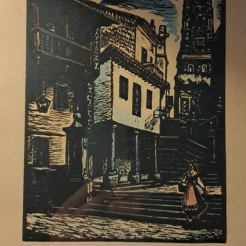 Ruotsalaisen taidemaalari Adolf Melinin (1880-1958) signeerattu puupiirros "Mora stuga från 1600-talet" 1900-luvun alusta. Taulun koko kehyksineen 27,5 cm x 34,5 cm. Teoksen koko n. 18 cm x 23 cm. Piirroksen oikeassa reunassa repeämiä. Vain nouto.