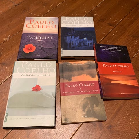 Paulo Coelhon kirjoja, useita teoksia eri nimikkeillä. Kirjat ovat kovakantisina sekä pokkareina. 4€/kpl, kaikki yhdessä 20€ +pk.