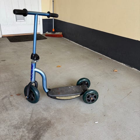 Lasten potkulauta sininen punaisilla kahvoilla
