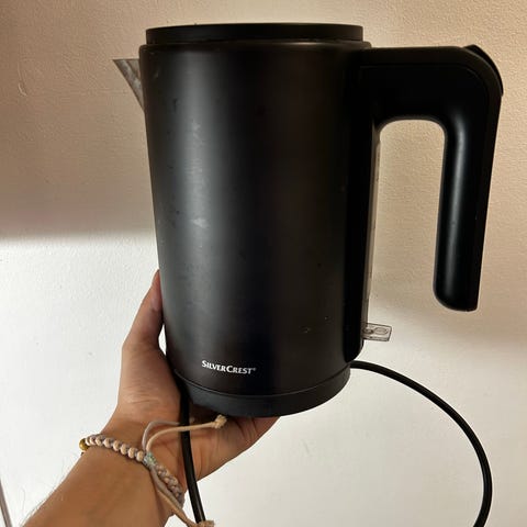Kulz lasinen vedenkeitin, jossa on musta kansi ja kahva. Vedenkeitin on läpinäkyvä ja valmistettu lasista ja muovista. Sopii veden keittämiseen kotikäyttöön.