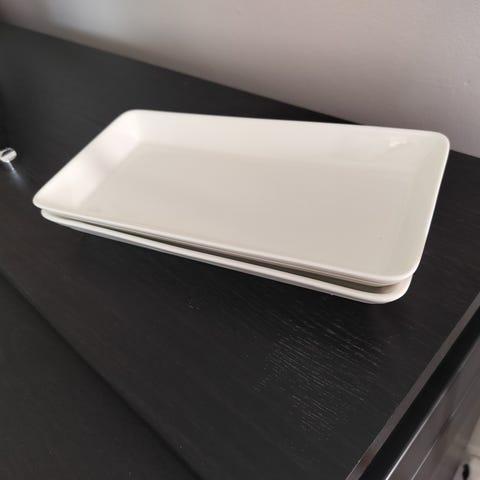 Kaksi avaamatonta pakettia muovisia tarjoiluastioita missä aluslautanen sekä irralliset kolme lautasta . Hibta yhteensä molemmille.