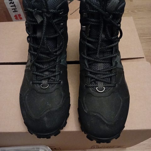 Merrell talvikengät, koko 42. Kengät on suunniteltu talvikäyttöön ja ne tarjoavat kestävän pohjan sekä lämpimän materiaalin kylmiin olosuhteisiin.