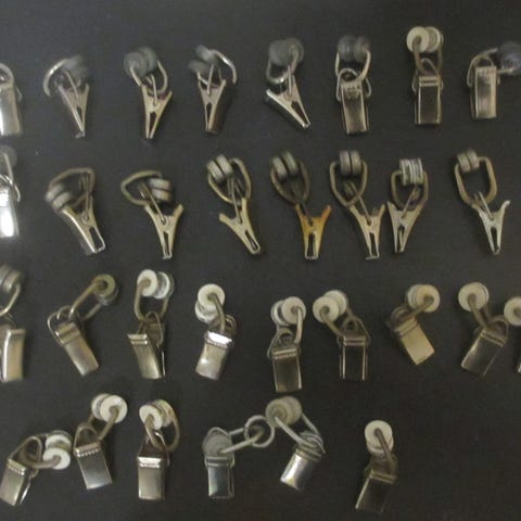 Myyn ylimääräisiksi jääneitä verhonipsuja ja stoppareita.