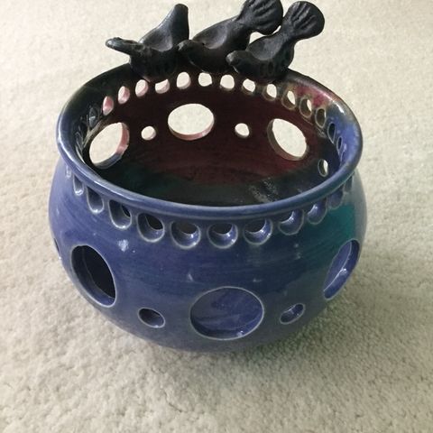 Myynnissä takorautainen tuikkulyhty. Korkeus 28cm ja leveys 18cm.