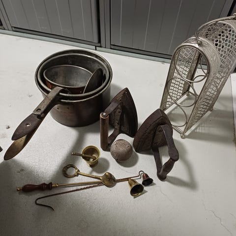 Keittiövälineitä pulloteline, paistinpannu, muita välineitä