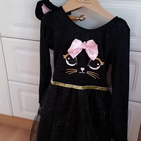 Mustavalkoinen ihana kissamekko pikku tytölle. Pituus ja kai kai näkyy kuvissa. Puuvilla
