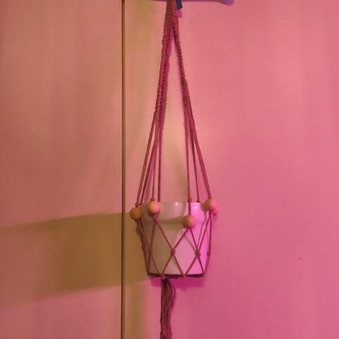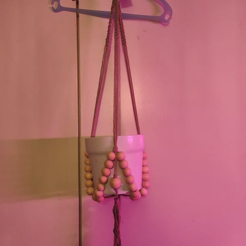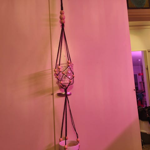 Itsetehty makramee amppeli. Värinä vaalean ruskea.