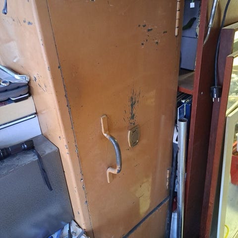 Vanha painava kassakaappi arvotavaroille tai mancave sisustus baarikaapiksi.