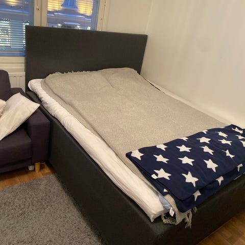 Myydään kuvan 160cm jenkkisänky. Uutta vastaava. Hyvin vähällä käytöllä ollut, vierashuonesänkynä. Lisäkuvia pyydettäessä. Nouto Iistä. Hp 400€