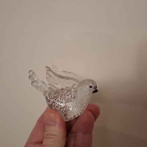 Myydään Lasilintu. Ei tietoa valmistajasta, ei tarraa/signeerausta. Korkeus 10 cm, pituus 11 cm.