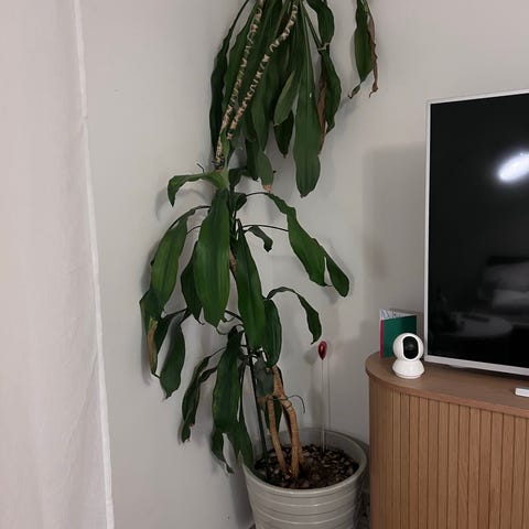 Viherkasvi valkoisessa ruukussa. Kasvi on sisäkasvi, jolla on tummanvihreät lehdet ja valkoinen ruukku. Sopii sisustukseen. Kasvi on 34cm pitkä.
