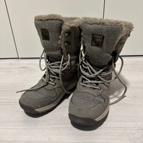 Myydään lasten siniset talvihuopikkaat. Käytön jälkiä on, ja väri kärjistä hieman kulunut. Koko noin 34.