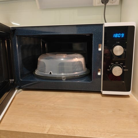 Deodorize toiminto ja keraaminen emalipinnoite. Suuri, halkaisijaltaan 28,8cm pyörivä lautanen. Auto cook, pikasulatus, 6 tehoasetusta ja useita ohjelmia. ECO tila.