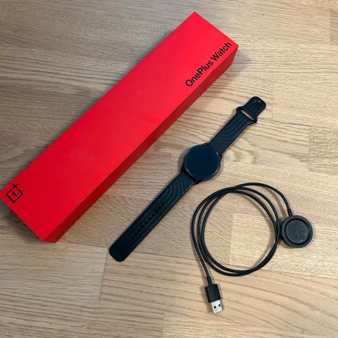 OnePlus watch mustalla alkuperäisellä rannekkeella. Mukaan laturi ja alkuperäinen laatikko. Mahdollisuus ostaa myös ruskea nahkaranneke.