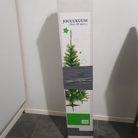 Kuusella ei ole laatikkoa eli myydään tuollaisena.