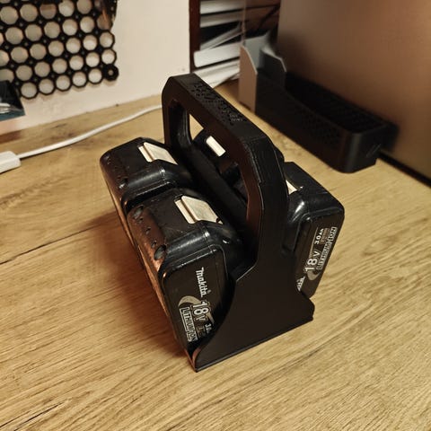 3d tulostettuja Makitan 18 volttisille akuille käypäsiä seinätelineitä.