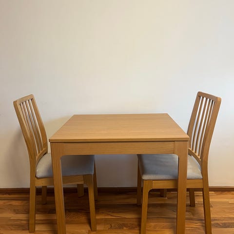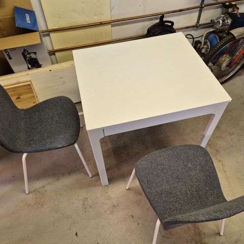 Ikean jatkettava pöytä ja 2 tuolia.
