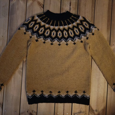 Myynnissä samasta langasta ja väristä myös islantilainen villapaita koossa S/M!