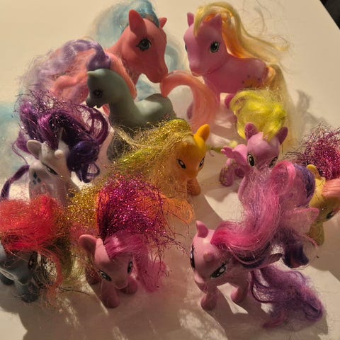 Myydään My Little Pony -setti. Yhteensä 20 ponia. Yhtä ponia koira maistanut, huomioitu hinnassa.