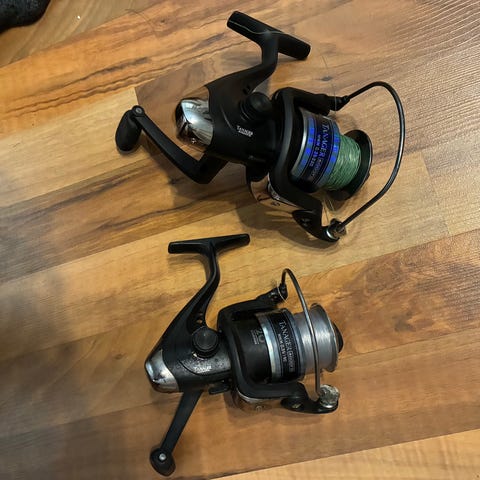 Käyttämättömät uudet. Avokelojen perus pikkutankki metallirungolla - ei ehkä se kevein, mutta kestää rajumpaakin kalastelua. Puolilla täytefluoron päällä 100m uutta 0,16mm Shimano Kairiki 4:sta.