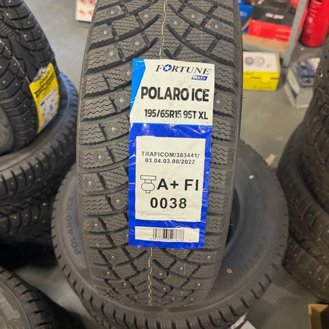 Vain yhden talven käytössä olleet talvirenkaat nastoilla, Mitat 195/65 R 15. Merkki "Michelin X-Ice North 4". Vanteet mukana.