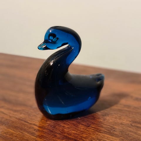 Espoon Taidelasi Oy lasinen joutsen koriste-esine sinisellä sisuksella