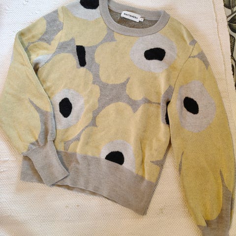 Ihana Marimekon Helmioksa Unikko neule koossa xs seuraavalle. Hieman ehkä kutistunut pesussa joten arvioisin todellisen koon olevan niukka xs. Kunto hyvä, käytetty. Koirakoti, Nivavaara