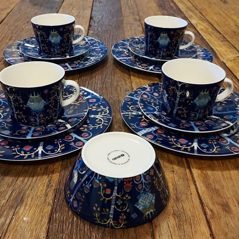 Iittala Taika kahvikupit ja lautaset 6 kpl sininen