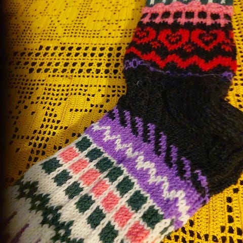 Käsin kudotut pitkävartiset villasukat