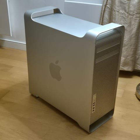 Mac Pro Mid-2010 (5.1). Ikää on ja pientä kosmeettista kulumaa siellä täällä mutta toimii niinkuin pitää. Alkuperäisen kovalevyn tilalle vaihdettu 120 GB Kingston SATA SSD IcyDock 2.5 3.5 SATA -adapterilla. Käyttis High Sierra. Metal GPU:lla tähän saisi Mojaven ja OpenCorella vielä uudemman.