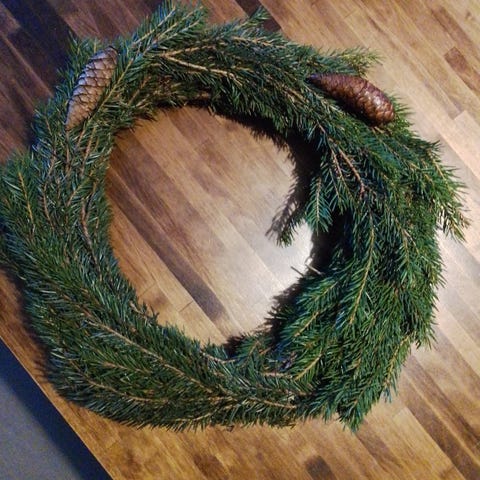 Myydään kranssi! Ostettu aikoinaan sokokselta, mutta jäänyt itseltä kokonaan käyttämättä! Halkaisija noin 50cm.