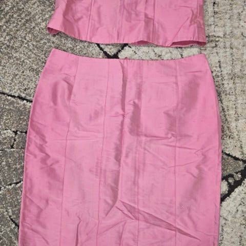 - Pitkä vuorillinen hame, joka ulottuu 170-senttisellä lähes nilkkoihin. Takana vetoketju ja pienet joustavat kuminauharypytykset.
