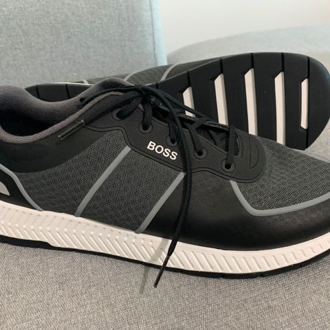 Myydään Hugo Bossin Jace Runn lenkkarit/tennarit. Kengät ovat aitoa nahkaa, joten kestävät oikein huollettuna pitkään. Kunto on erittäin hyvä ja mukaan tulee kenkien alkuperäinen laatikko. Ovh. kengillä on 250 euroa.