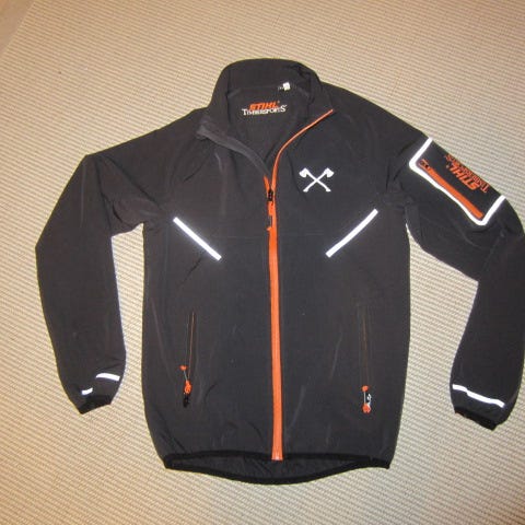 Myydään Stihl metsurin turvatakki, jossa viiltosuojaus etuosassa ja hihoissa koko matkalla (etupuolella)
