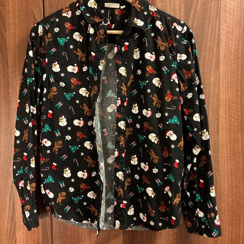 KappAhl lasten unisex collegepaita, koko 158/164 cm. Paita on valmistettu puuvillasta ja siinä on kirjava kuosi, jossa on jouluteemaisia hahmoja ja kuvia. Joulupaita.