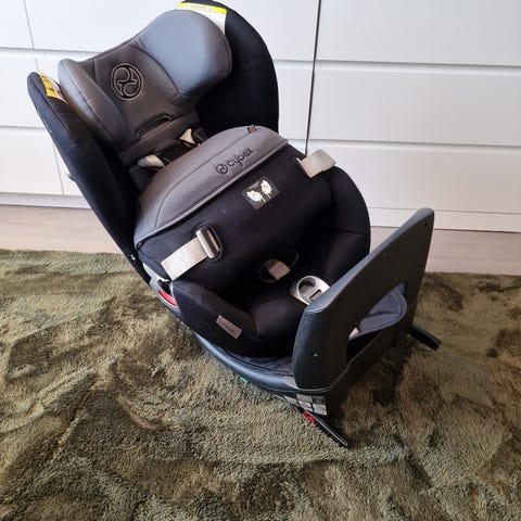 Sirona turvaistuin erinomaisessa kunnossa Cybexin plus kankailla. Istuimen saa käännettyä ovelle, ja sekä naama, että selkä menosuuntaan.