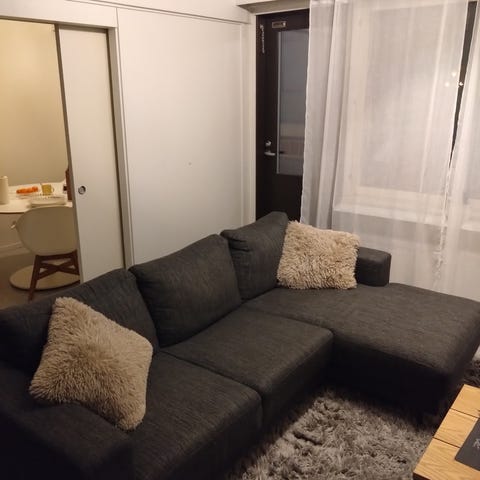 Myydään ihan ehjä divaani sohva. Väri vaalea harmaa. Ikää neljä vuotta. Alunperin ollu toisen kätinen. Muistaakseni Masku mainosti tätä "kätisyys ei vaihdettavissa", mutta kyllä se on vaihdettavissa :) Muuton vuoksi myydään. Koiratalous.