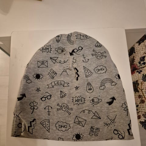 Me & I lasten pipo, kokomerkinnätä nro 3, menee isommalle pojalle tai paksutukkaisellw. Sinen pipo on kuvioitu jalkapalloaiheella.