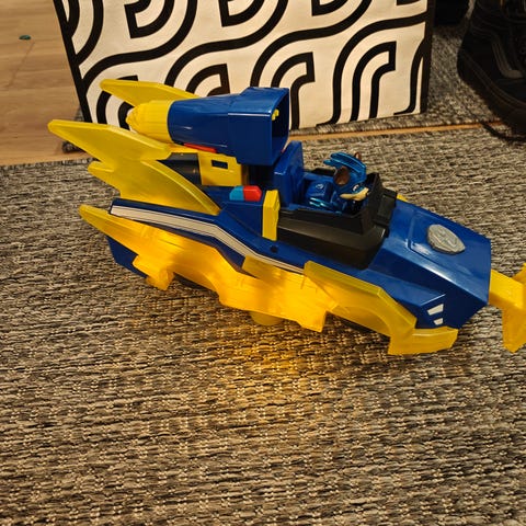 Ryhmä Hau Supervainu ja erikoisauto, johon napista painamalla tulee ääni ja valo